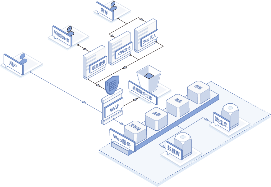 有效防御 SQL注入、XSS攻擊、命令/代碼執(zhí)行、文件包含、木馬上傳、路徑穿越、惡意掃描等 OWASP TOP 10攻擊。