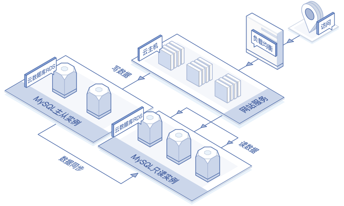 支持只讀實例,橫向擴展數據庫讀取能力,每個只讀實例擁有獨立的鏈接地址,可由應用端控制壓力分配。幫助用戶輕松實現讀寫分離架構,應對業務海量請求壓力。