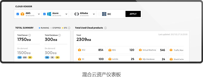 OpsNow可以使用統一的門戶來管理IDC以及其他多云平臺,如AWS、Azure、阿里云、騰訊云、華為云等。