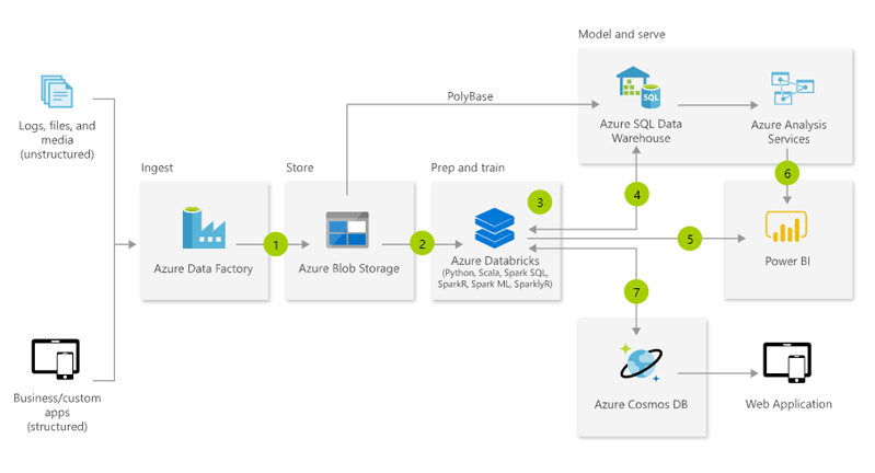 - 7 將來自 Azure Databricks 的見解傳入 Cosmos DB,使用戶可通過 Web 和移動應用進行訪問。