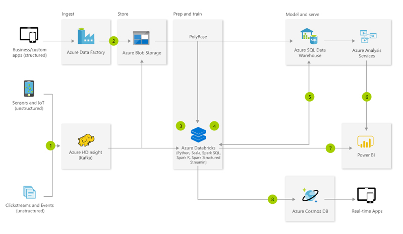 - 8 將來自 Azure Databricks 的見解傳入 Cosmos DB,使用戶可通過實時應用進行訪問。