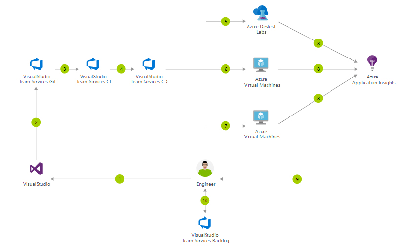 Azure DevOps 提供 CI/CD 管道,首先是一個用于管理應用程序源代碼和基礎結構代碼的 Git 存儲庫(ARM 模板)、一個用于生成包和其他生成項目的 Build 系統,還有一個用于設置管道以通過開發、測試和生產環境部署更改的發布管理系統。管道使用 ARM 模板在每個環境中按需預配或更新基礎結構,然后部署更新的版本。還可以使用 Azure 開發/測試實驗室自動取消未使用的測試資源。