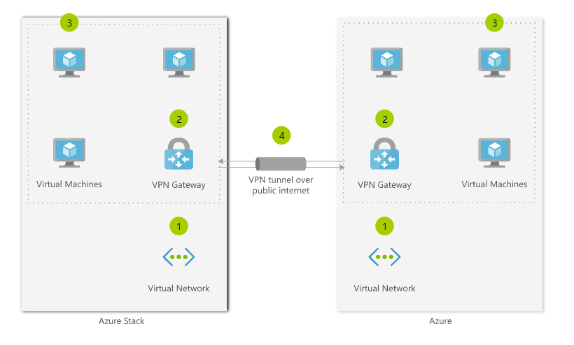 - 2 在 Azure 和 Azure Stack 中部署虛擬網絡網關。